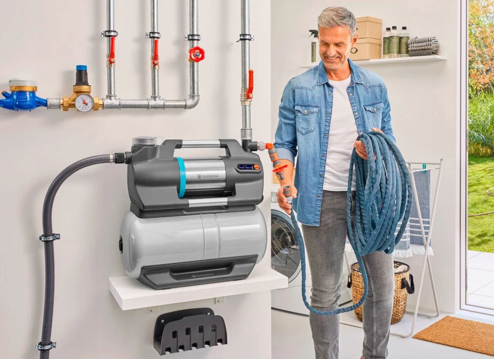 GARDENA Водяний насос GARDENA SilentComfort 09068-20 оснащений термовимикачем , який захищає двигун насоса від перегріву , тому ви можете бути впевнені, що він завжди працюватиме ефективно. Захист від сухого ходу гарантує високу довговічність. Завдяки міцній конструкції (водонепроникний, багатошаровий матеріал) і вазі 17,7 кг гідрофор легко переносити і встановлювати. Клас електричного захисту IPX4 забезпечує безпечну роботу навіть у вологому середовищі, що робить його ідеальним для використання на вулиці.