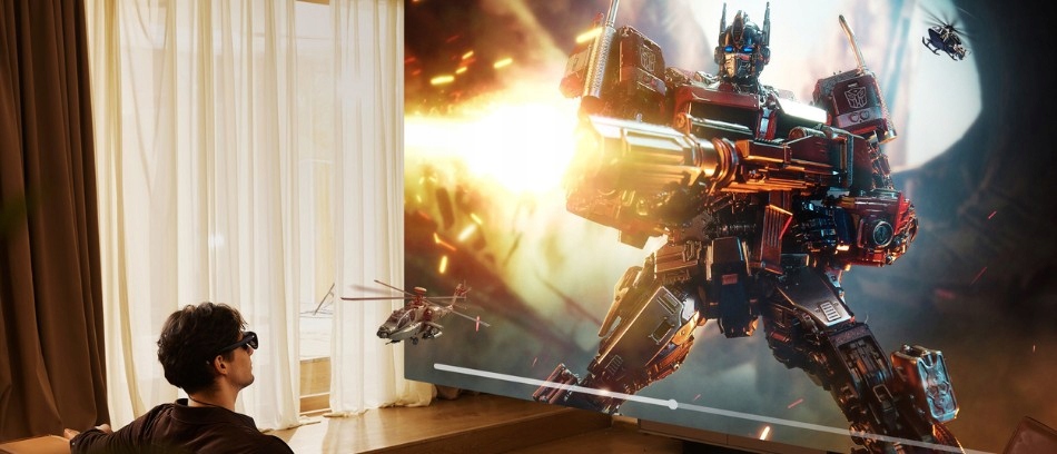 Завдяки широкому полю зору, еквівалентному 215-дюймовому екрану, ви відчуєте себе ніби у справжньому кінотеатрі. Висока частота оновлення 120 Гц і роздільна здатність Full HD 1080p гарантують плавне та деталізоване зображення.