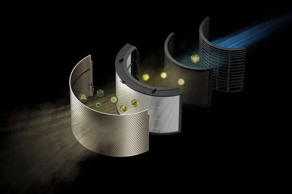 Технологія модуляції подвійного потоку дозволяє спрямовувати потік повітря у двох напрямках – вгору та вперед або тільки вперед. Очисник може працювати як класичний очисник, вентилятор або циркуляційний вентилятор , адаптуючи свою роботу до пори року та умов у приміщенні – наприклад, у спекотні літні дні, з обмеженою вентиляцією або під час приготування їжі.